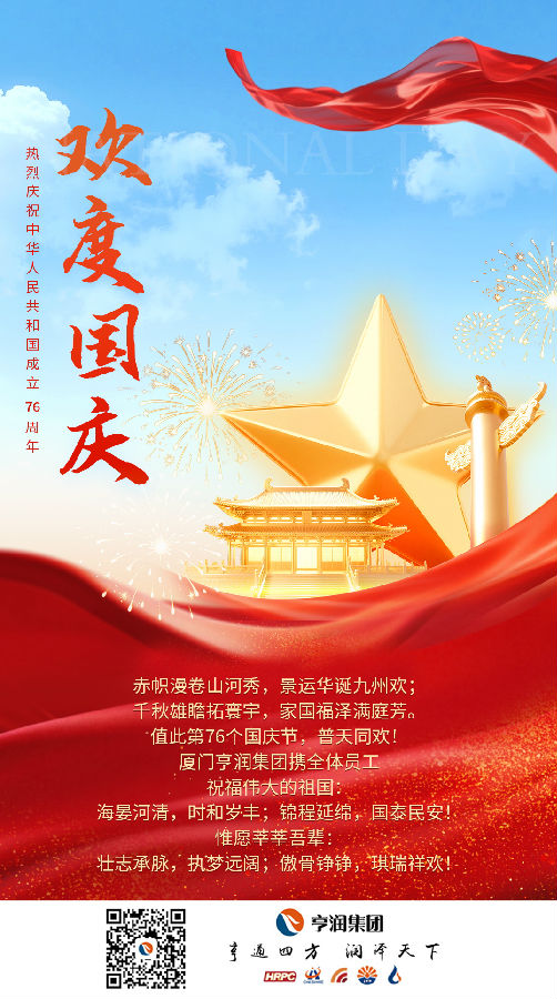 欢度|九州承日月,千秋护山河!厦门亨润集团热烈庆祝祖国母亲76周年盛世华诞!